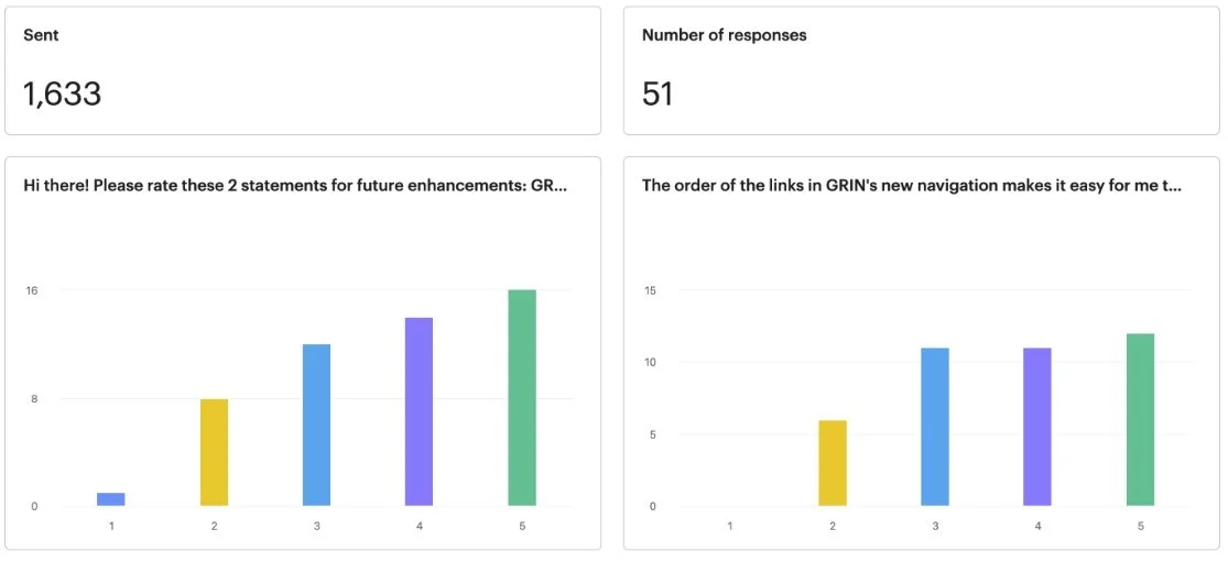 Previously, users stated that GRIN’s navigation was too complex. After implementing the changes, most respondents rated GRIN’s navigation as easy to use!
